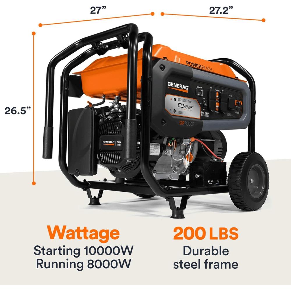 10,000 / 8,000 Watt Generac Portable Generator With Electric Start – GP8000E