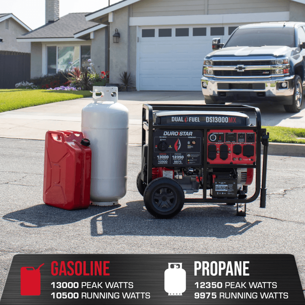 Power your home or work site with the Durostar 13000 Watt Portable Generator—a robust, dual-fuel powerhouse engineered for emergency backup and heavy-duty use. With push-button start convenience, dual fuel capability (gasoline and propane), and advanced safety features like a CO shutdown sensor, this generator is built to deliver reliable, high-output energy when you need it most.