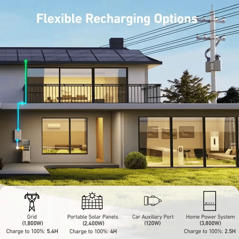 Seamless Home Integration: Can connect to home circuits for whole-house backup power.