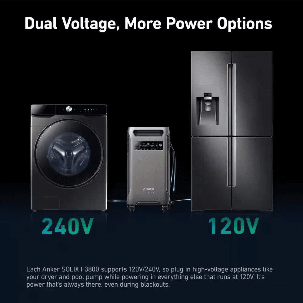 Equipped with 6000W of continuous power and a 9000W peak surge capacity, the Anker SOLIX F3800 can power large appliances, tools, and entire home circuits with ease.