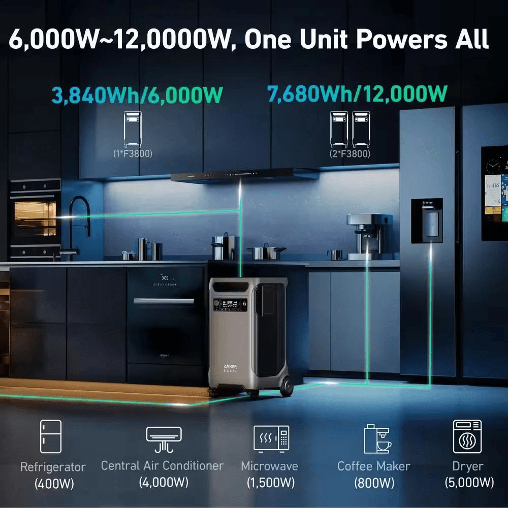 Anker 6000W Output/9000W Peak SOLIX F3800 Push Button Start All-in-one Power Station w