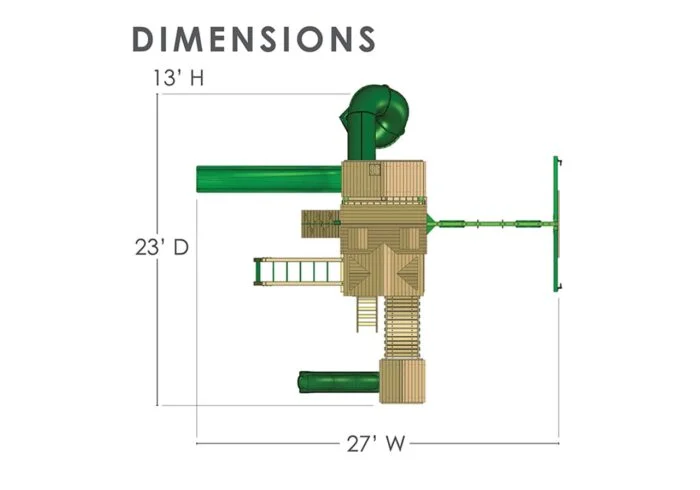 • Recommend a 6 ft. perimeter around the playset for added safety which brings the total recommended footprint to 39 ft. W x 35 ft. D