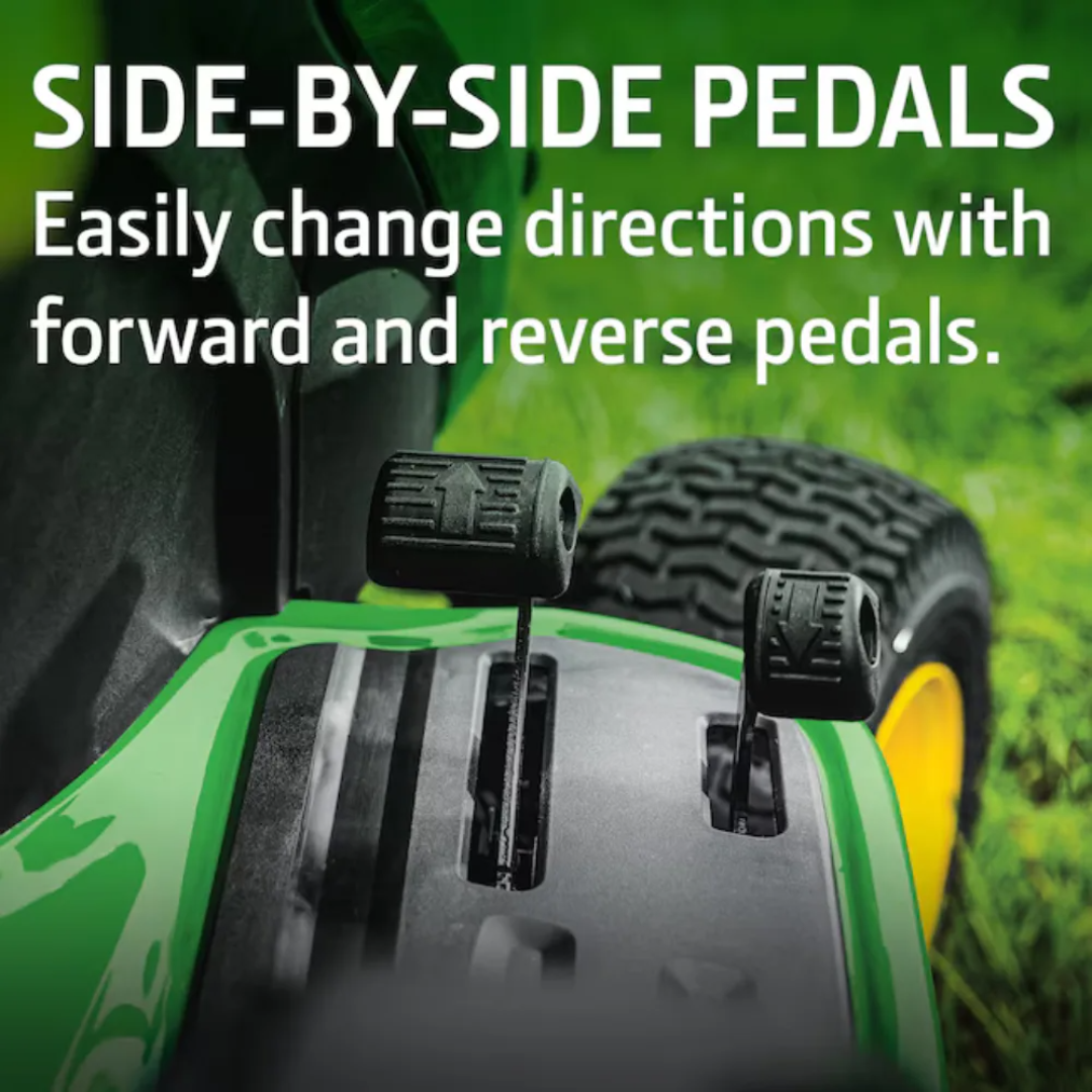 Equipped with a hydrostatic transmission controlled by side-by-side pedals, the S100 provides an infinite range of ground speeds. This intuitive control system allows for smooth, responsive operation in a variety of mowing conditions.