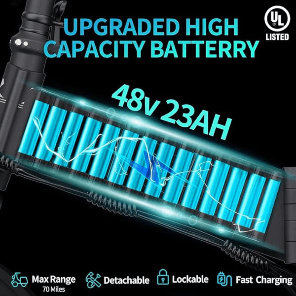 Folding Frame: The quick-fold mechanism makes it effortless to collapse and carry your e-bike, perfect for urban lifestyles or storage in tight spaces.