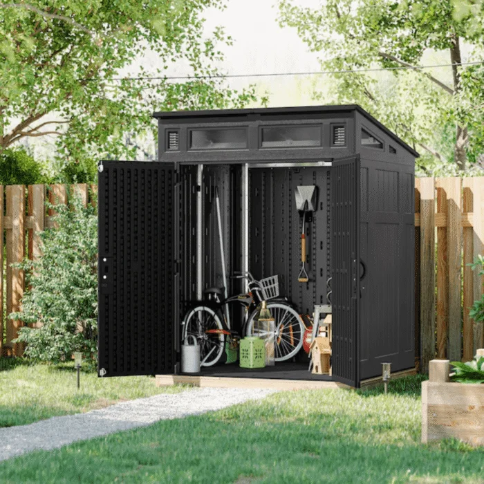 The Suncast 6 ft. x 5 ft. Modernist Storage Shed is a stylish, durable, and functional solution for outdoor storage. Its modern design, robust construction, and ample storage space make it an excellent choice for homeowners looking to organize their outdoor belongings efficiently. Whether you need to store gardening tools, bicycles, or seasonal equipment, this shed provides a secure and visually appealing storage option.