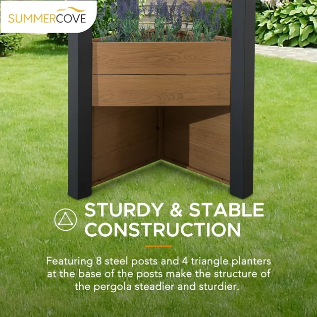 Customizable & Stylish Design: This pergola come with 4 built-in triangle shaped planters for growing flowers, while also making the structure steadier and sturdier.